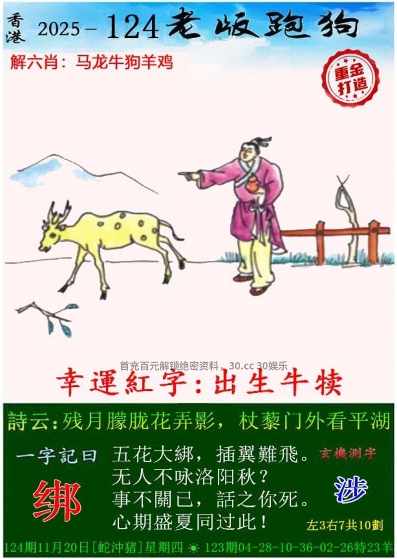| 124期:💖三行中特【水金土】开:牛05准 |